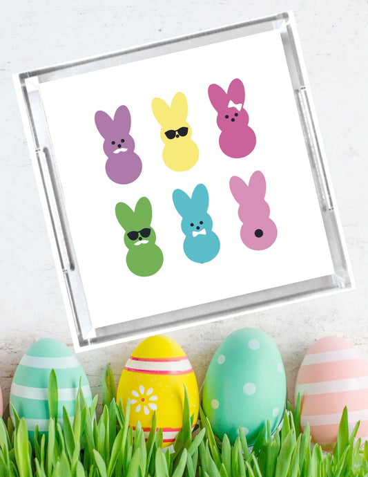 Acrylic Serving Tray - Easter Cool Bunny Colorful Tray - Peeps