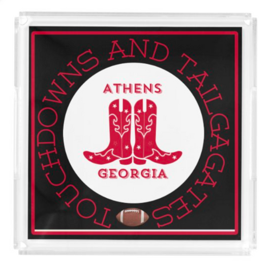 Acrylic Serving Tray - Gameday Boots Ready - ATHENS GEORGIA
