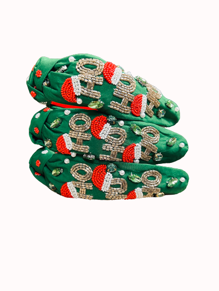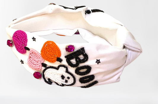 Pearls Headband Purple Fabric with Gold, Green, Purple Pearls